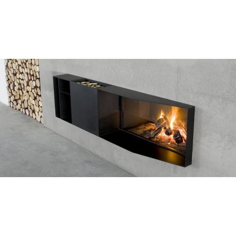 Cheminées à Bois de forme Rectangulaire en matériau Acier. Cheminée avec alimentation à Bois