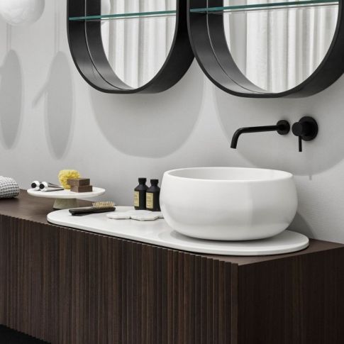 Le Bassinelle Cielo Vasque à poser BATO , conçu par Andrea Parisio - Giuseppe Pezzano, adapté à tous les environnements de salle de bains. L'article mesure 19 cm de hauteuret 43 cm de diamètre.